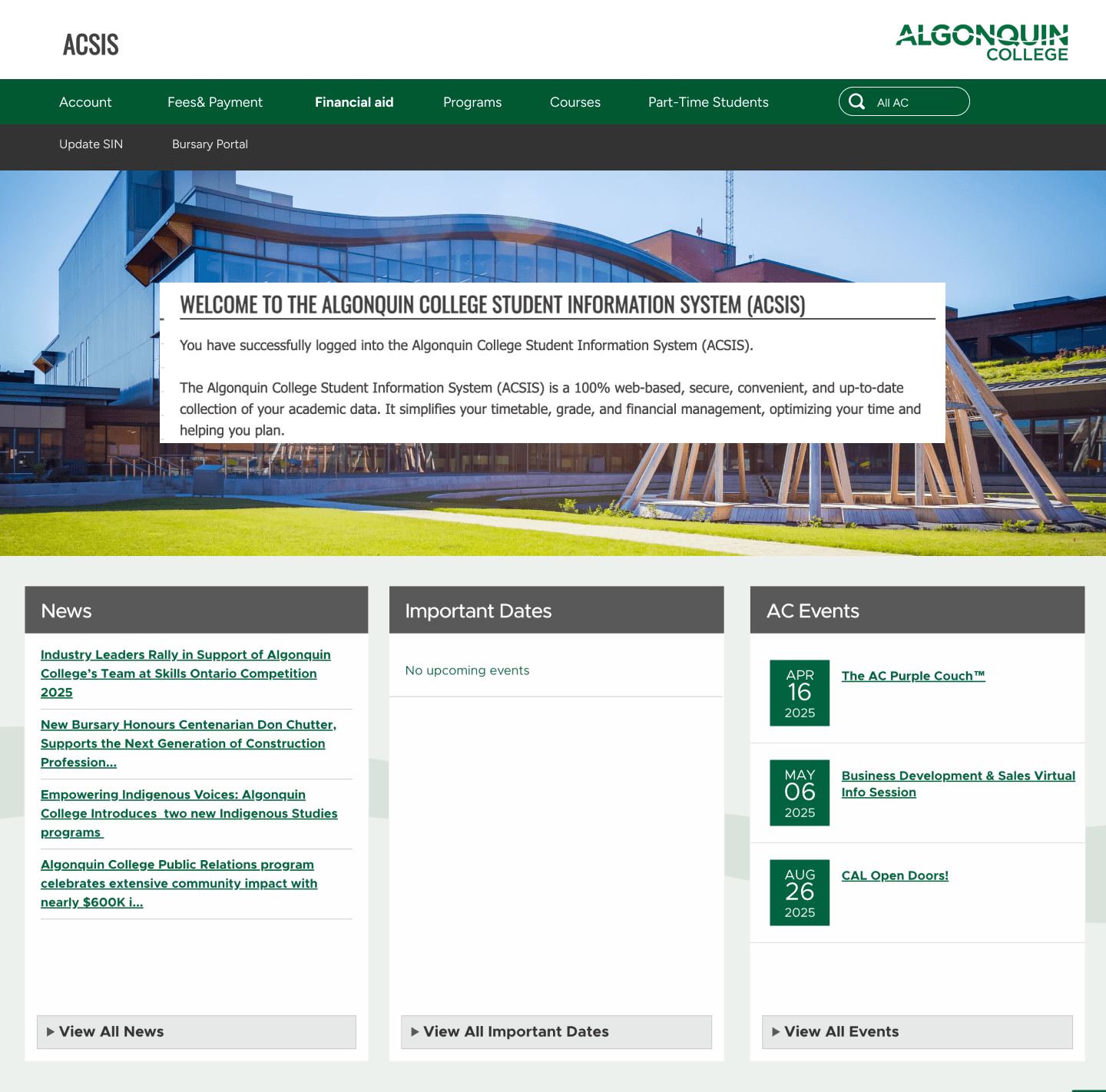 Access the Bursary portal via Acsis