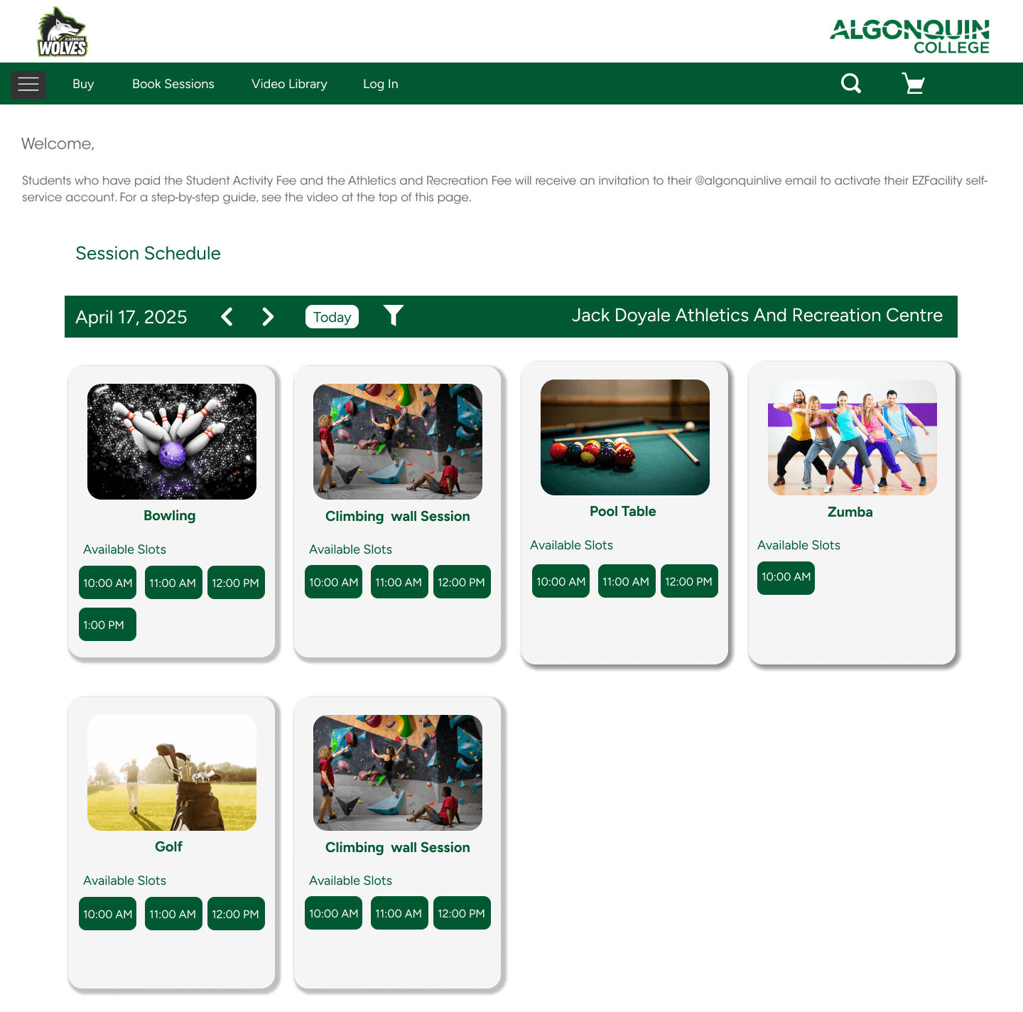 Book a Zumba Class via EZfacility