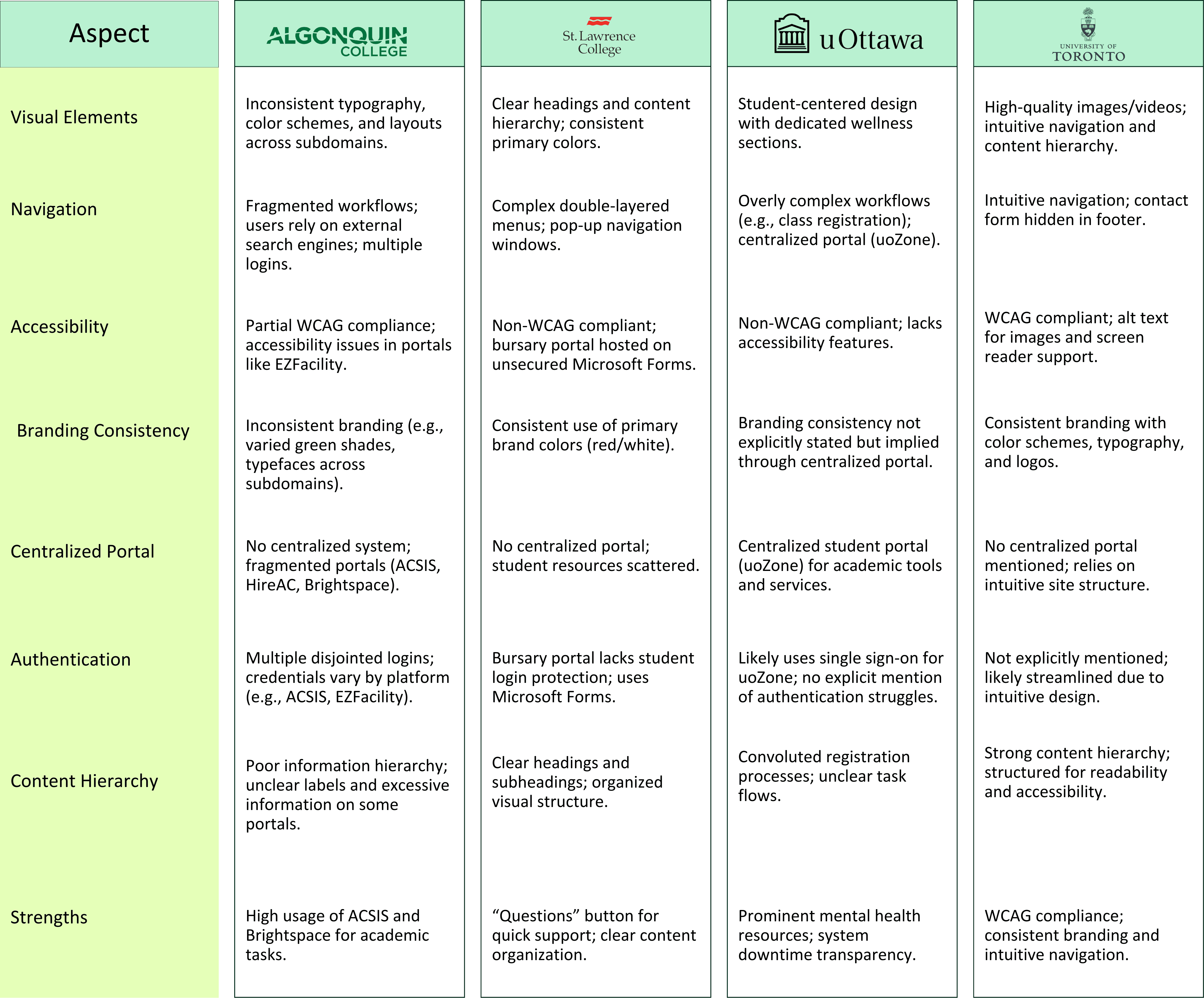 Varying design patterns across Algonquin College subdomains and portals affect students’ onboarding experiences, learning outcomes, and engagement.
